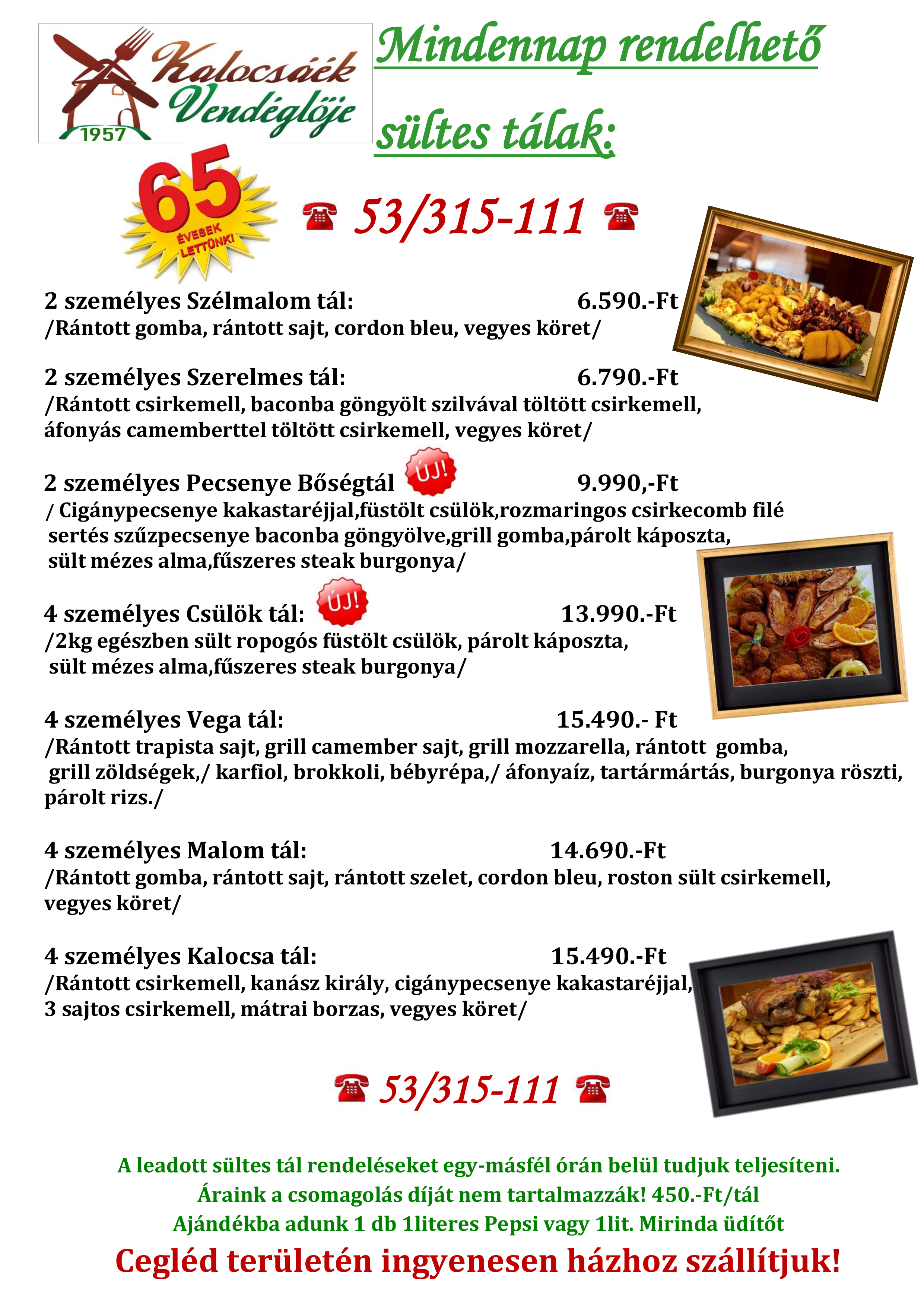 Ételeink a kezdetek óta mindig magyaros, házias ízvilágúak voltak, ezt a jó szokásunkat a jövőben is meg fogjuk őrizni, amivel már több mint 60 éve állunk a kedves vendégeink rendelkezésére.