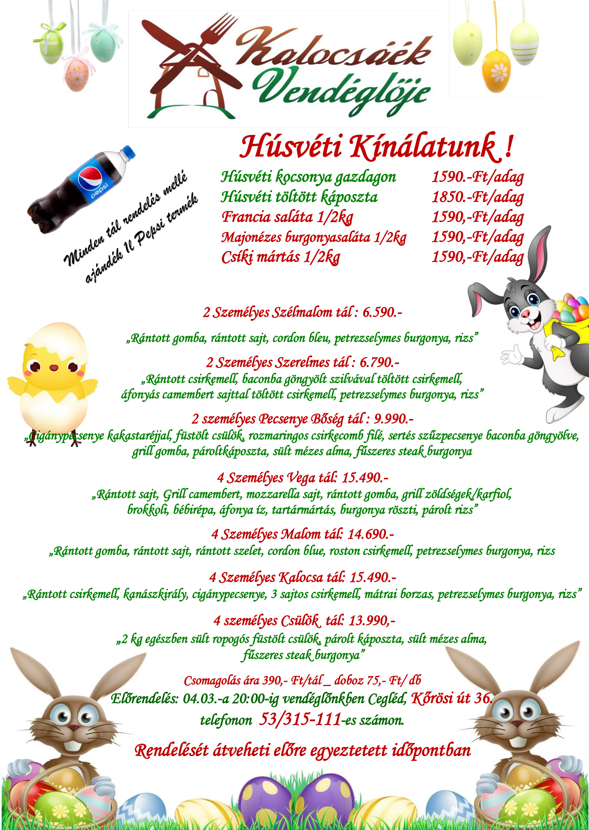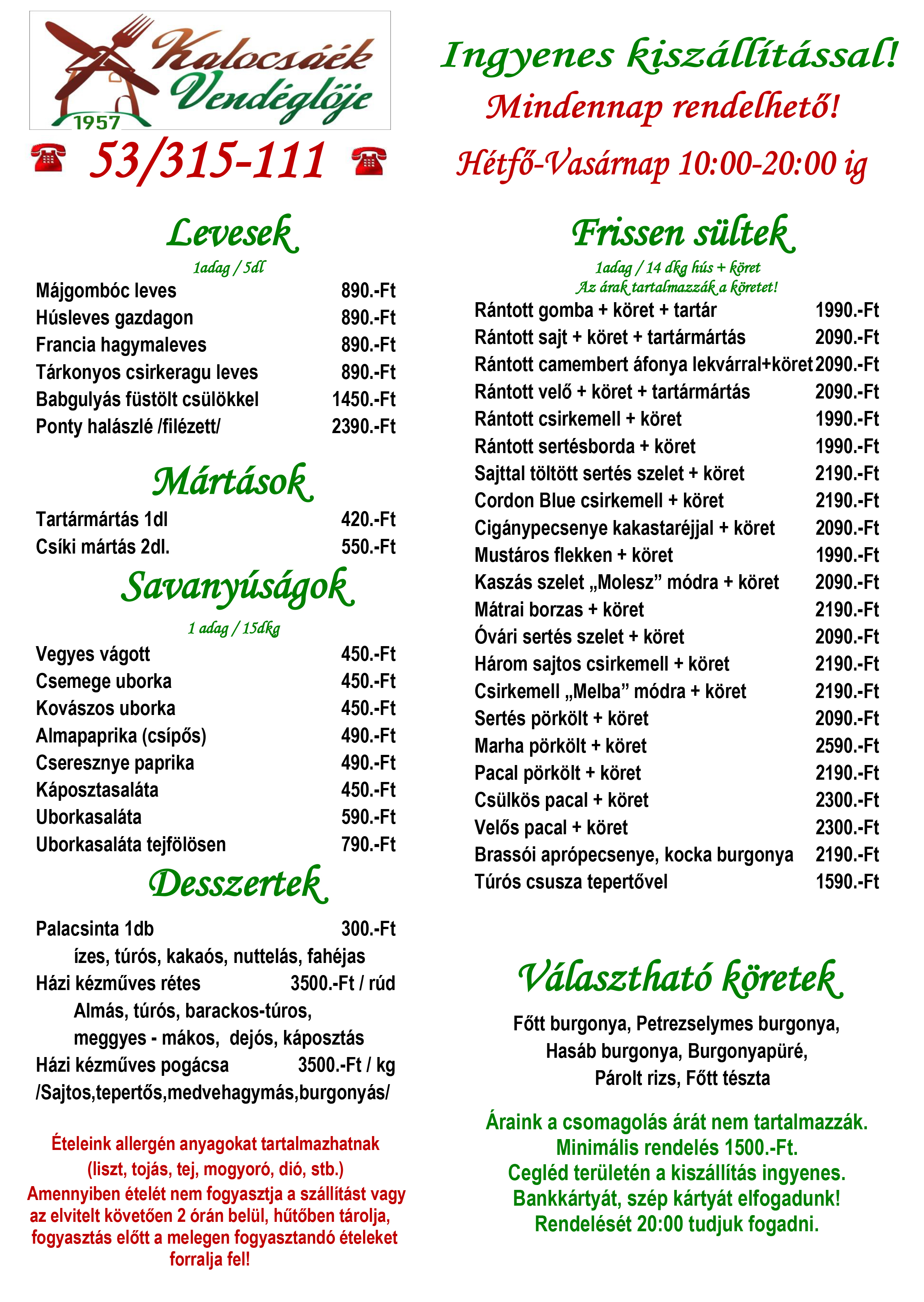 Állandó heti menüvel és bő házias, magyaros ízvilággal várjuk Vendégeinket!