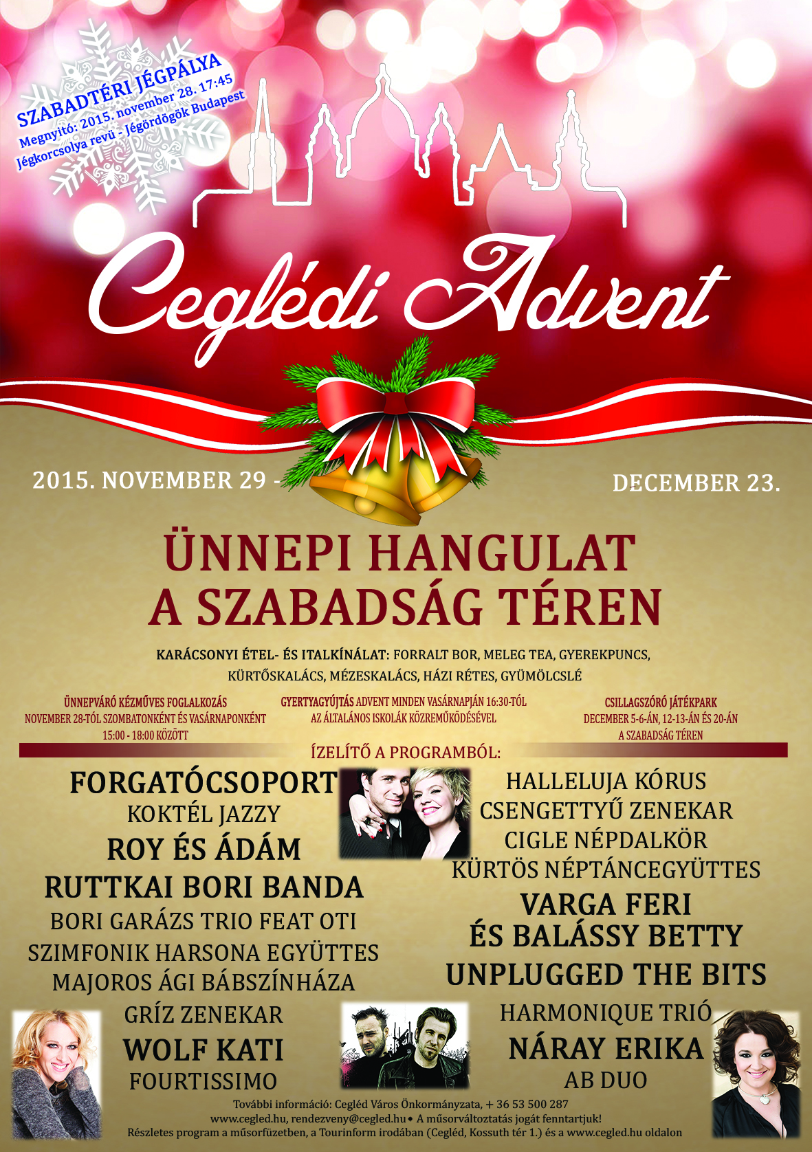 A városban már gőz erővel folynak a karácsonyi előkészületek. Felszerelték az ünnepi égősorokat, valamint épül a szabadtéri korcsolyapálya a Szabadság téren. Az ünnepi programsorozat november 28-án veszi kezdetét.