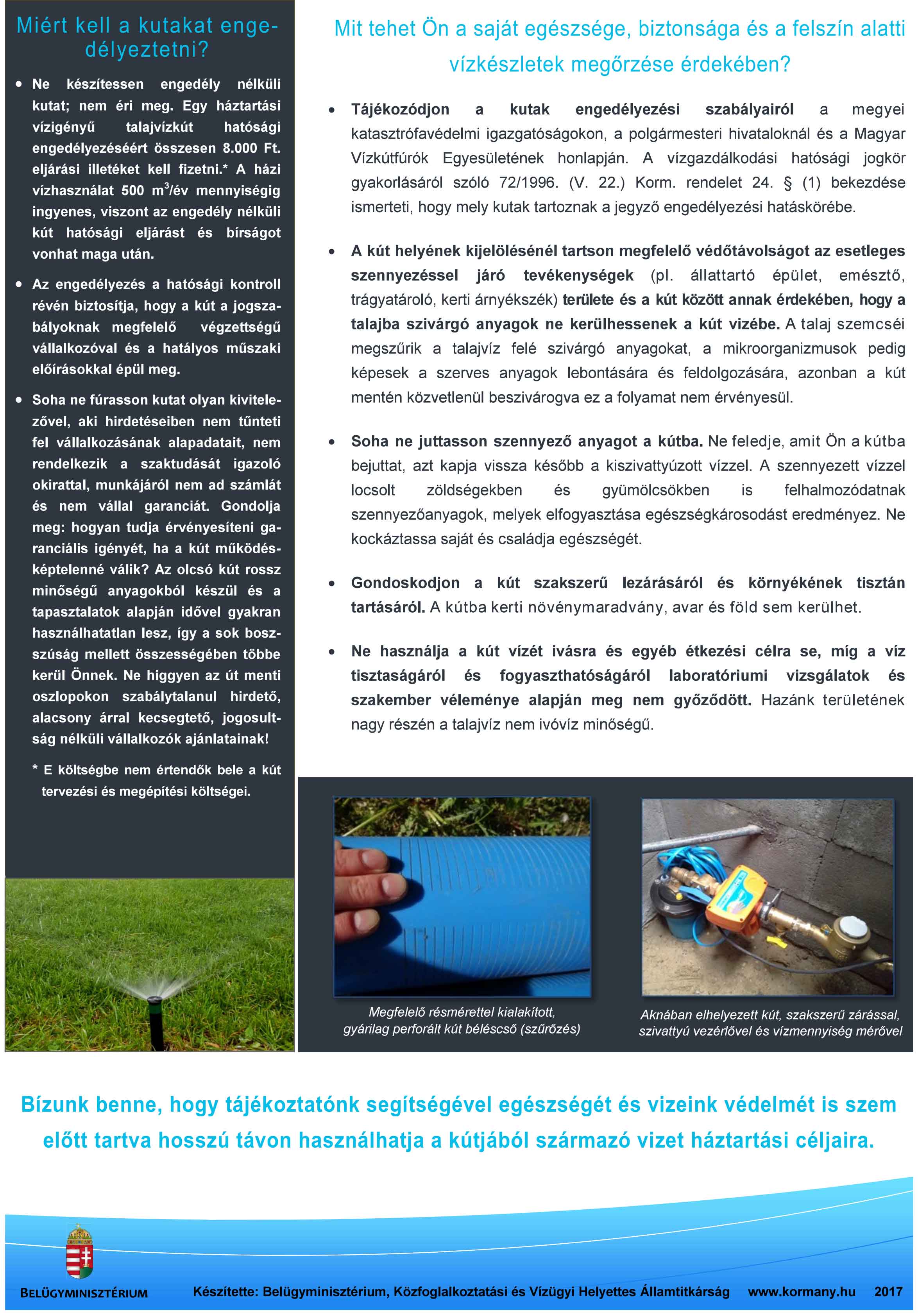 Tájékoztató a házi kutak megvalósításáról és fenntartásáról