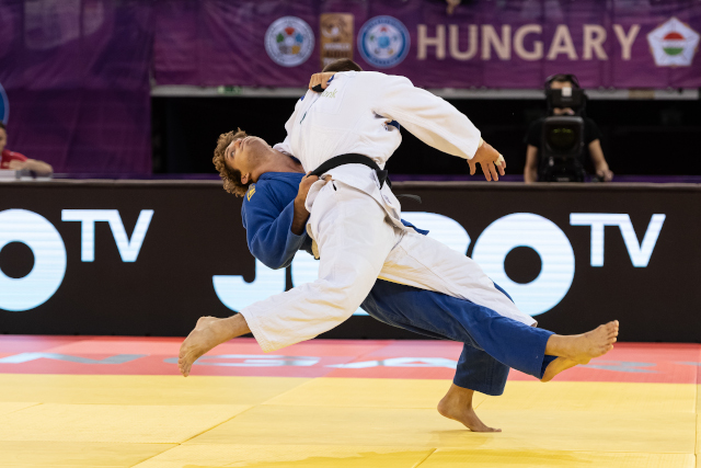 A 100 kilósoknál a ceglédi Vég Zsombor az osztrákok Grand Slam-győztese, Aaron Fara ellen kezdett. Riválisát az idei almadai GP-n sikerült legyőznie, s a Papp László Sportarénában is Bíró Tamás tanítványának sikerét hirdette ki a bíró. Zsombor vazarival vezetett, az osztrák judós hatalmas energiákat mozgósított a fordításért, s egy jó indításból csaknem az oldalára fektette a magyart, csakhogy Vég Zsombor "kikönyökölte" az esést, s zuhanás közben összefejelt Farával. Az osztrák nem tudott védekezni a leszorítás ellen, majd a meccs után percekig ült a földön, a tatami mellett. KO...