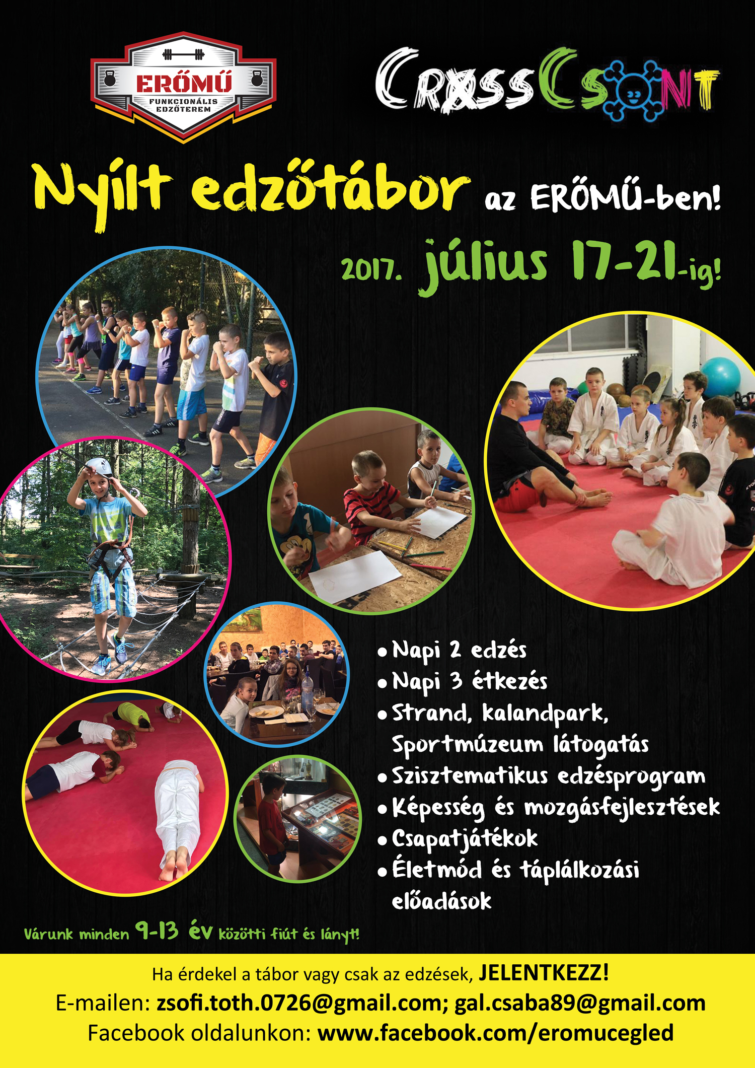 Július 17-21 között (minden nap 8:00tól 16:00ig) CrossCsont csoportunk edzőtábora következik, melyre úgy döntöttünk, bárki mást is szívesen látunk, aki eddig nem próbálta ki magát nálunk!