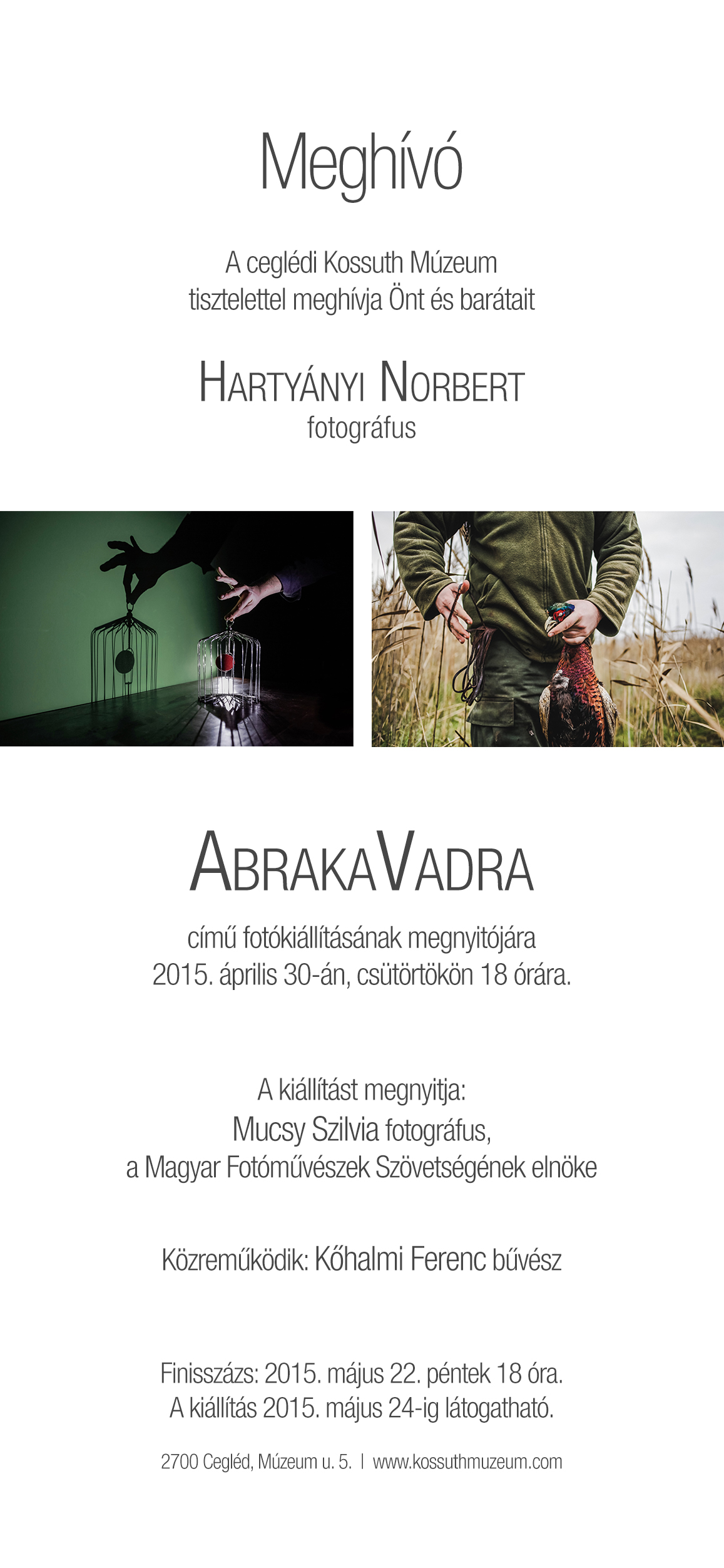 Április 30-án nyílik Hartyányi Norbert ceglédi fotográfus AbrakaVadra című fotókiállítása a Kossuth Múzeumban.