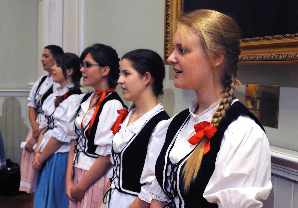 A programsorozat részeként kedden este a Kossuth Gimnázium Leánykara lépett fel a Városháza Dísztermében.