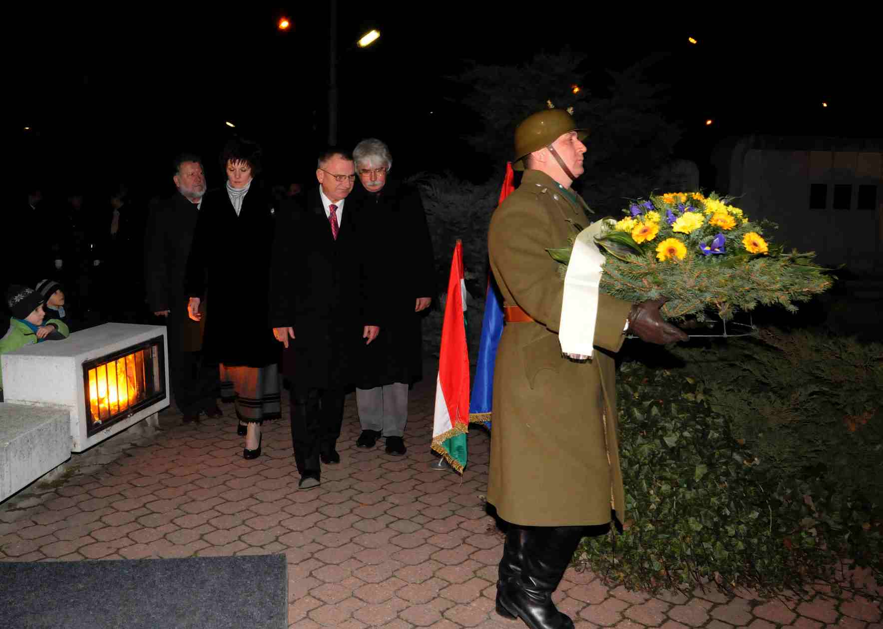 Végül az I. és II. Világháborús emlékműnél egyházi szertartás keretében elhelyezték a kegyelet virágait.