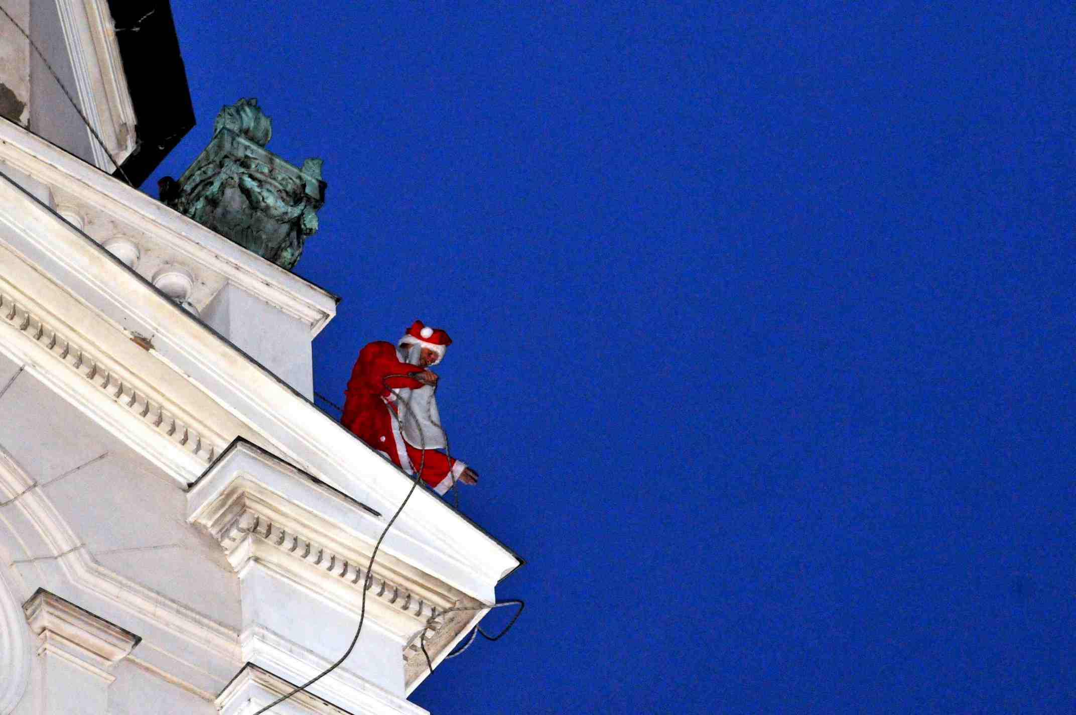Régen látott embertömeg gyűlt össze szombat délután a Szabadság téren, ahol minden egyes szempár a Református templom tornyára szegeződött. Nem, nem a pontos időre voltak egyszerre ennyien kíváncsiak, hanem a város mikulásának érkezését várták, aki idén igazán látványos belépővel örvendeztette meg kicsiny városunk lakóit. A cseppet sem tériszonyos mikulás egyetlen kötél segítségével a Református templom egyik tornyából ereszkedett alá a Szabadság térre. Az akciófilmbe illő jelenetet lélegzetvisszafojtva nézte végig a népes közönség, szerencsés földet érését pedig kitörő ujjongással fogadták.