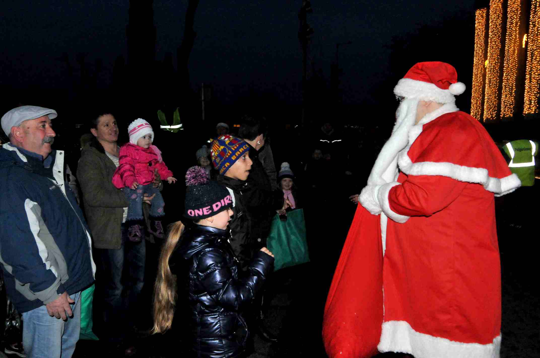 A Szabadság téren rengeteg kisgyermek várta már a bátor nagyszakállút, aki szaloncukorral és néhány jó szóval kedveskedett apró rajongóinak, akik egy-egy közös fotóval is megörökíthették a nagy találkozás emlékét. (Fotók hamarosan az oldalon)