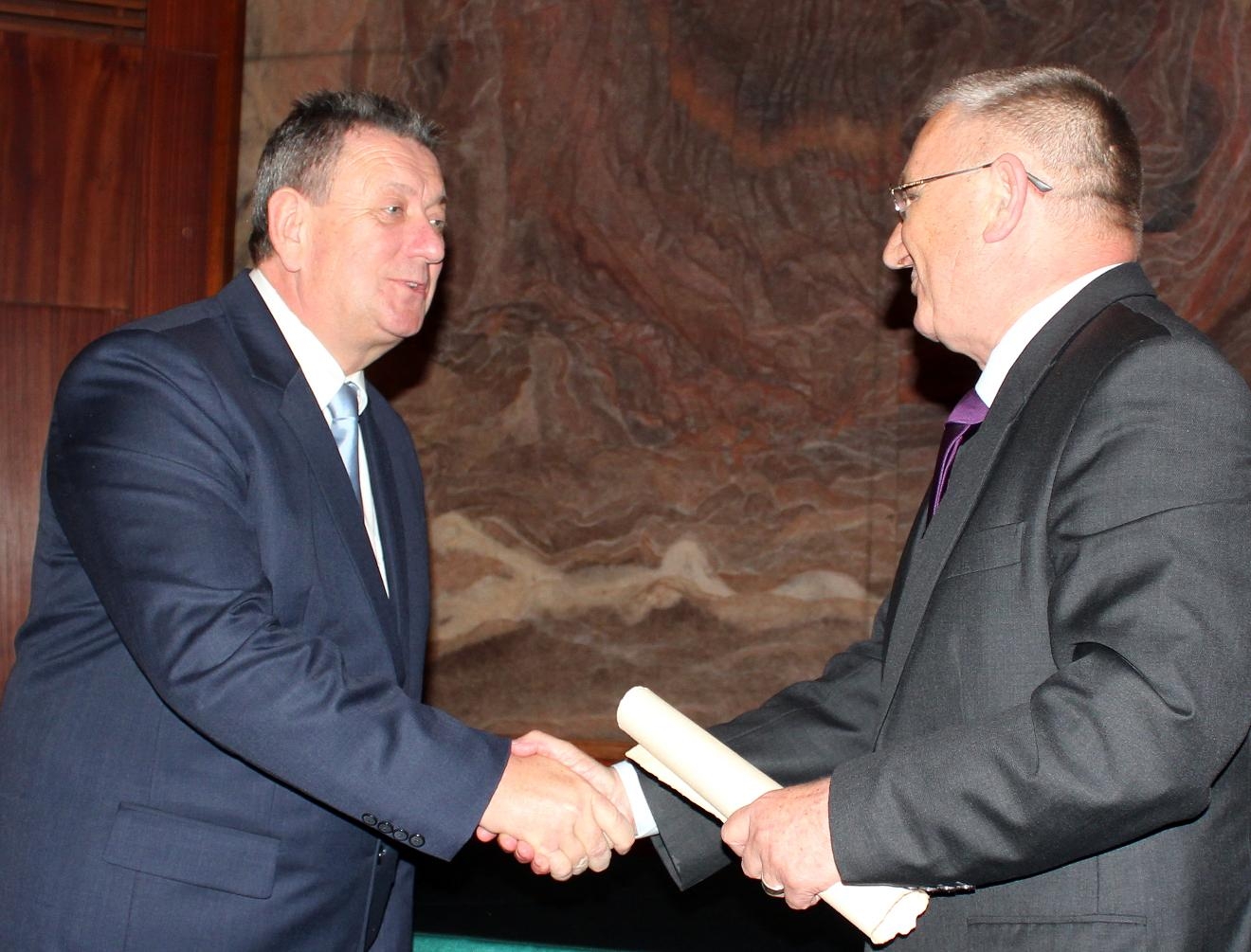 Bizonyságlevelet adott át a kormány nevében Földi László országgyűlési képviselő Abony és Nagykőrös polgármesterének.