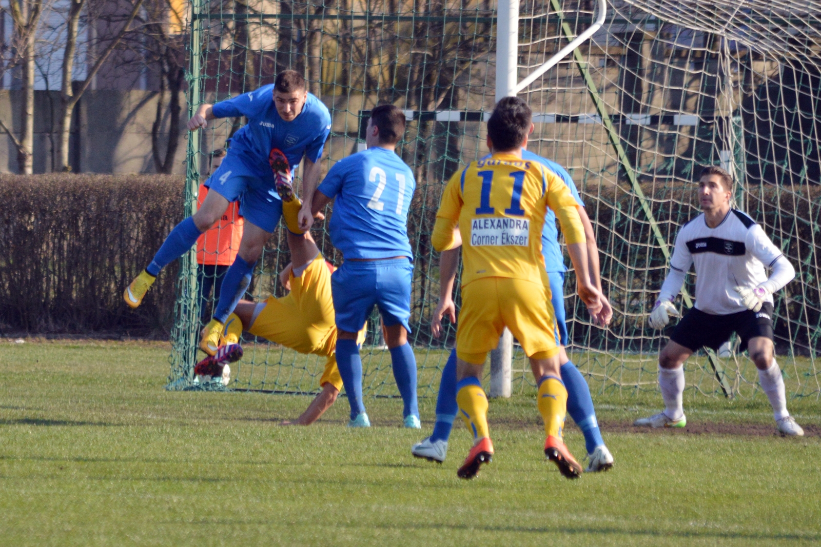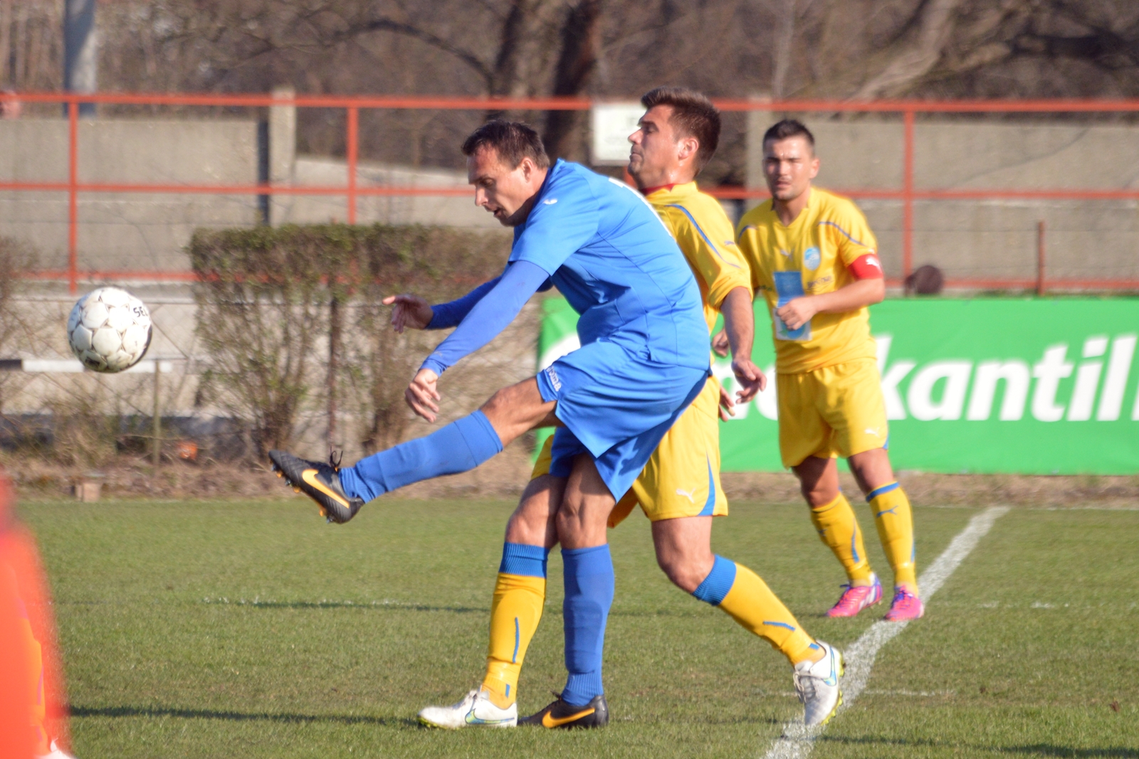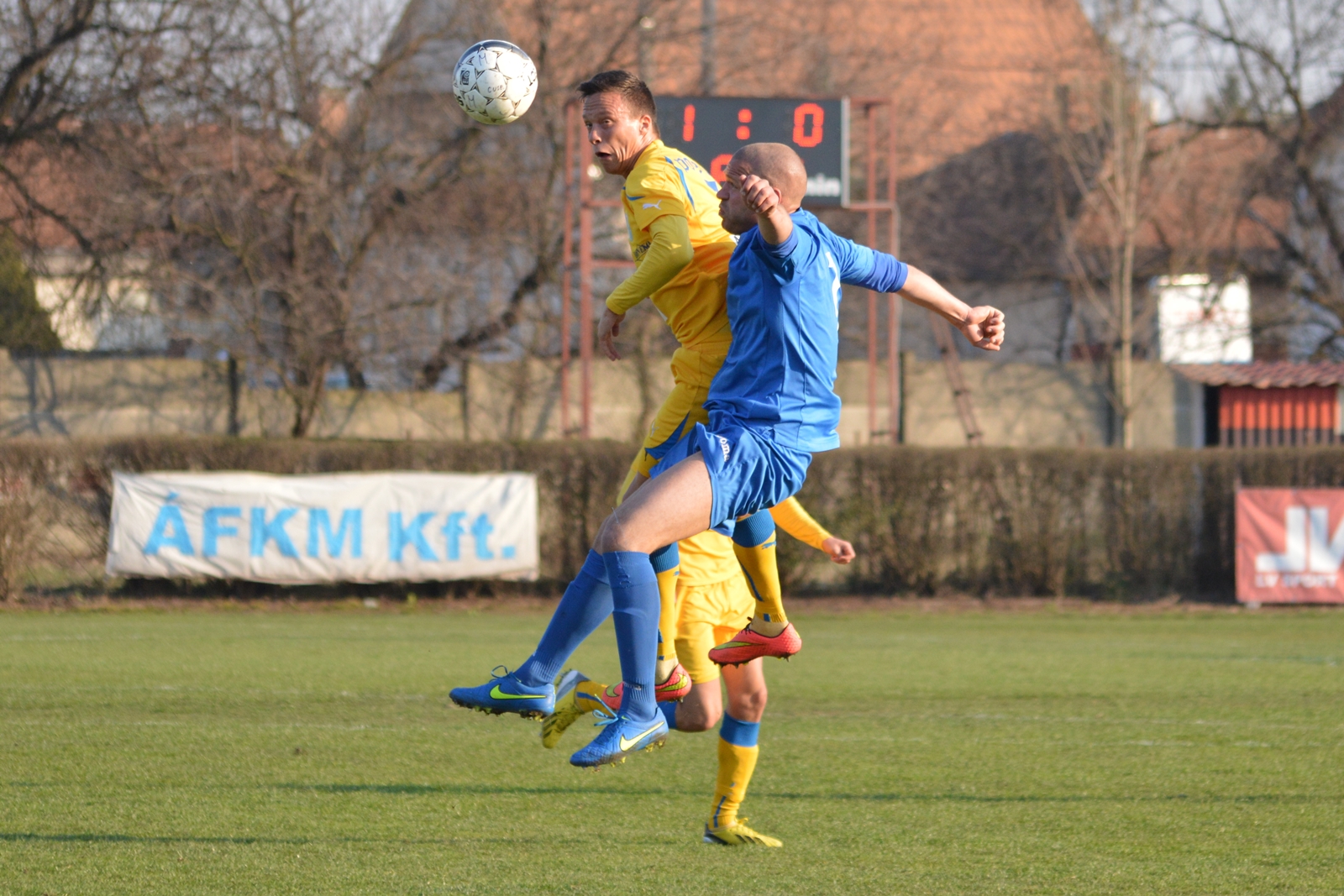 Nagy elszántsággal lépett pályára csapatunk ezen a „hat pontos” mérkőzésen. A közel négyszáz hazai néző ereiben megfagyott a vér a 2. percben, amikor az ellenfél egy kapu előtti kavarodást követően büntetőhöz jutott. Kapusunk, Tóth Zoli viszont óriási bravúrral kivédte a bal alsó sarokra tartó labdát. Végre lehetett hallani közönségünk hangját is, amely buzdítástól vezérelve mi is kiharcoltunk egy büntetőt. Kapitányunk, Koós Gabi kíméletlen volt. Meg van a vezetés! Ezután több lehetőséget elpuskáztunk. Gólt szerezhetett volna Vattai, Makrai, Pantovic is, de csak helyzeteket jegyezhettünk.