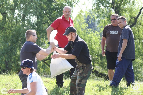 Ottjártunkkor a lakók csónakokkal közelítették meg elázott otthonaikat, billegő hajókon költöztették bútoraikat, lovakat hoztak ki a farmról, ám olyan is akadt, aki a fazekáért látogatott haza, hogy az önkénteseknek meleg ételt készíthessen. Az összefogás ereje a bajban ismerszik meg igazán: szép példája volt ennek a szombati nap, ami verőfényes napsütéssel kísérte végig a munkálatokat. A Ceglédről delegált csapat kora reggel nekilátott a gát megerősítésének, helyenként az alapok lerakásának.