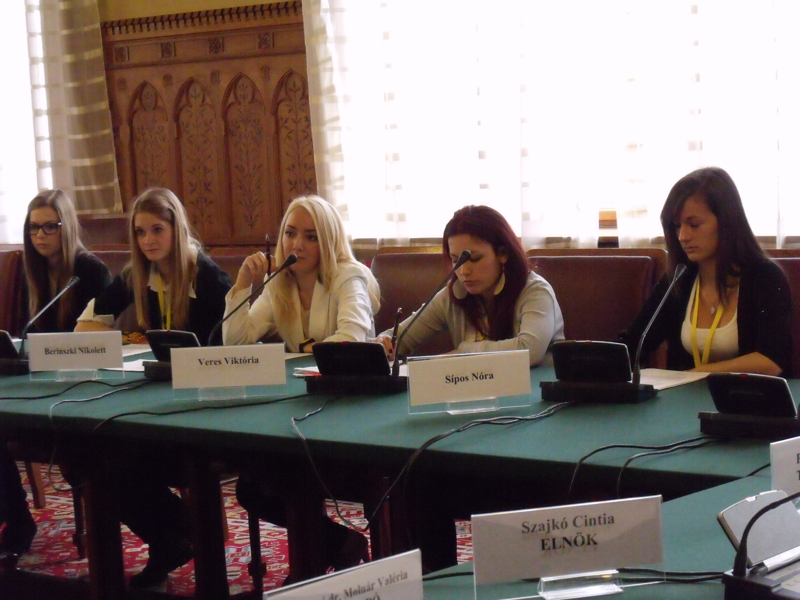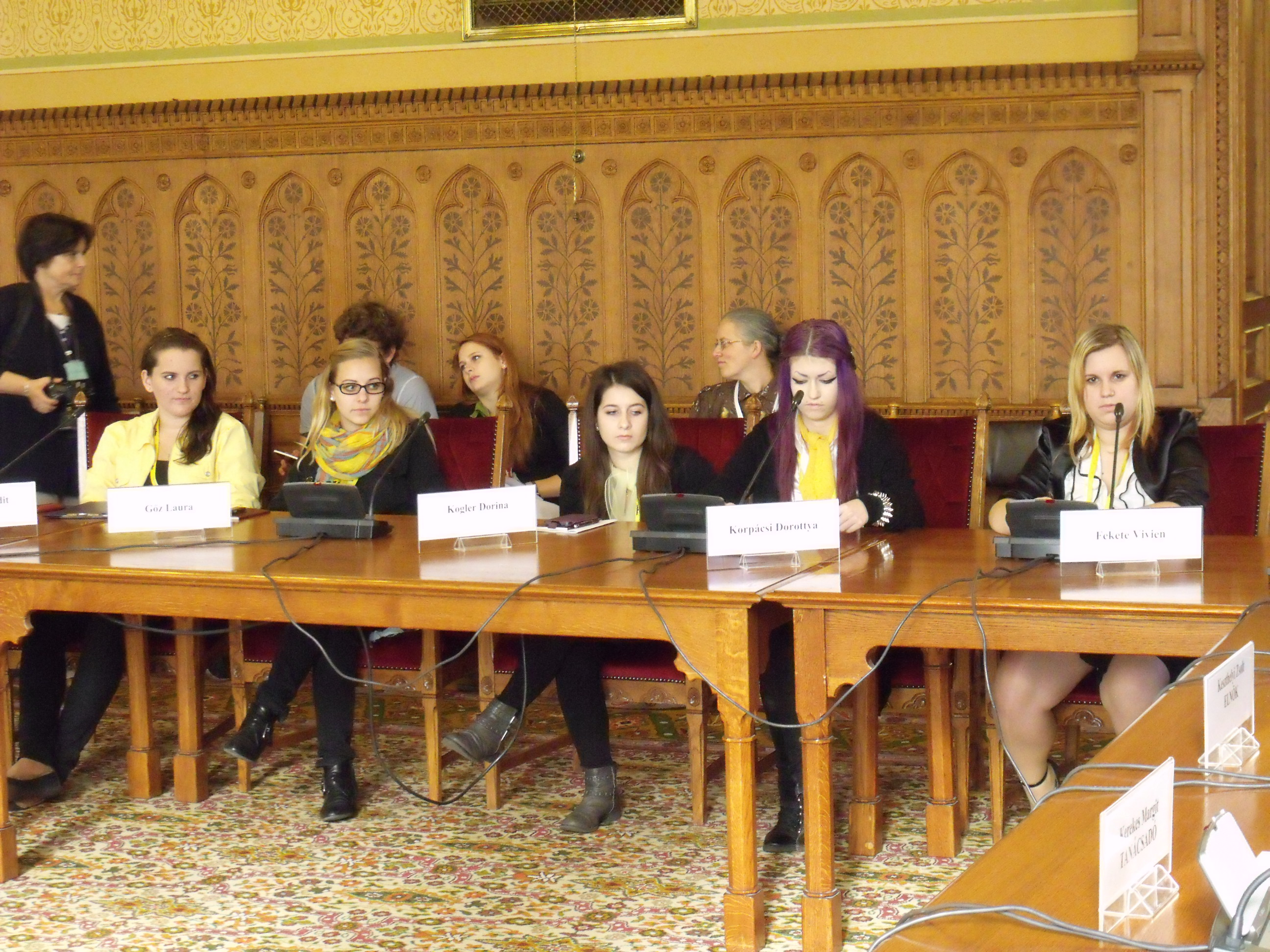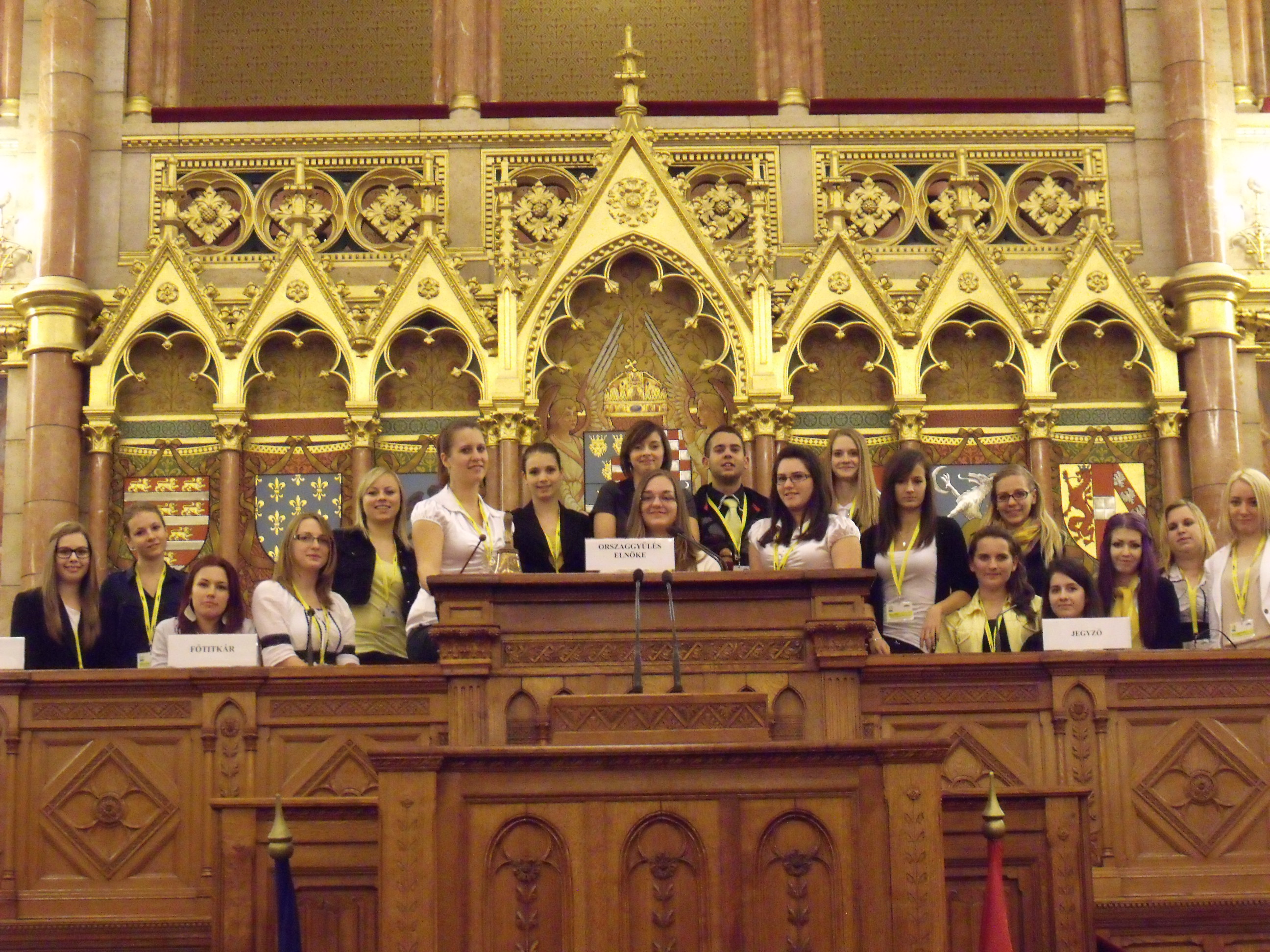 A 12. b-s lányok rendkívül rátermettek voltak. Szinte harcoltak egymással, hogy ki milyen pozíciót töltsön be, mivel nagy részük tavalyról már rendelkezett tapasztalatokkal a játék menetét illetően. Az előzetesen kiosztott anyagokban az szerepelt, hogy kormánypártként a mobiltelefonok oktatási célú használatáról nyújtottunk be egy törvényjavaslatot. Ez szerintem egy nagyon érdekes téma volt, mivel akár a való életben is megállná a helyét.