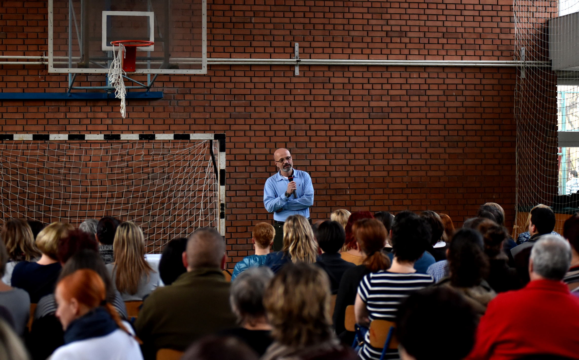 Droghelyzet 2016 címmel tartott előadást Dr. Zacher Gábor, főorvos a Várkonyi István Általános Iskola Rákóczi úti épületének tornatermében csütörtök délután.