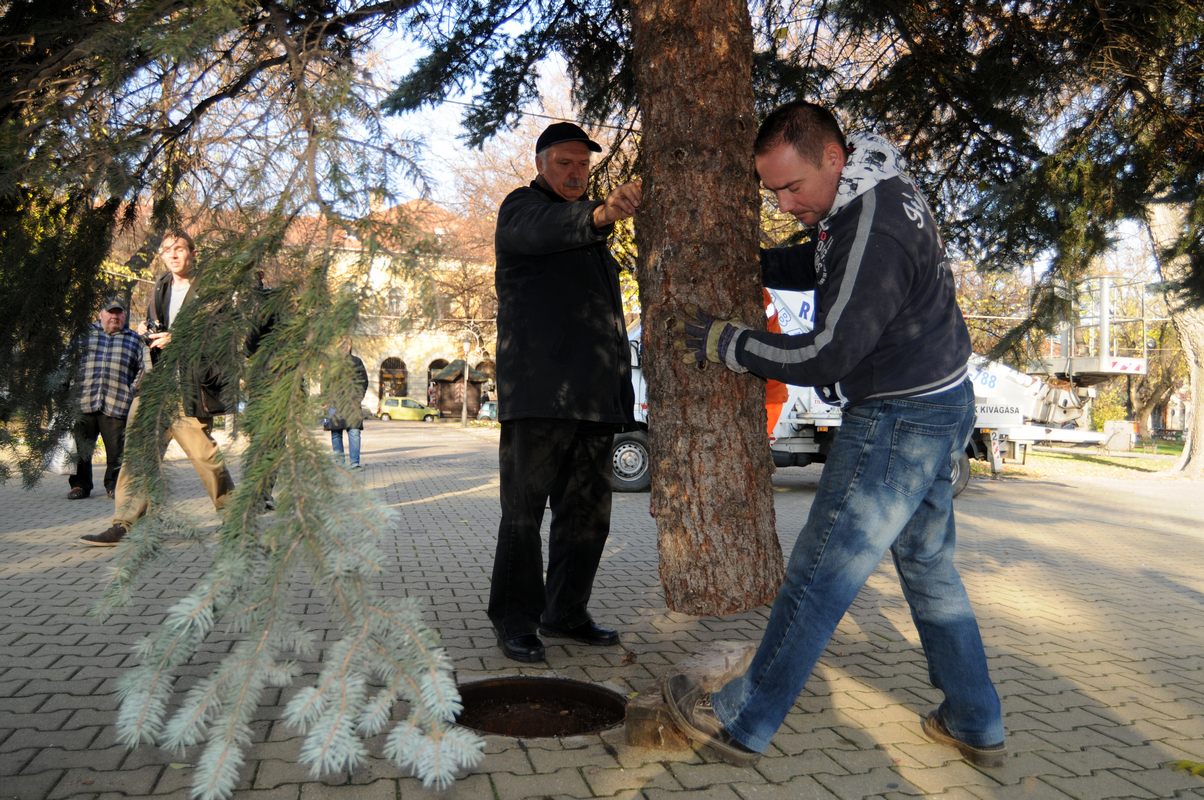 A fenyőfa kiemelését és szállítását, valamint a Szabadság téren való felállítását – mint minden évben – Kelemen Zsolt autódarus vállalkozó végezte. A kivágásban kosaras kocsijával Baróti Gábor segített.
