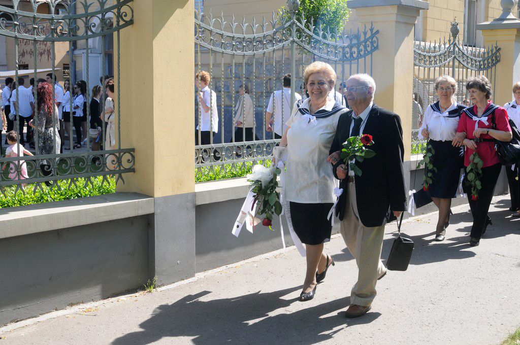 A frissen ballagó diákokkal együtt az 50 évvel ezelőtt elballagott diákok is körbejárták régi iskolájukat.