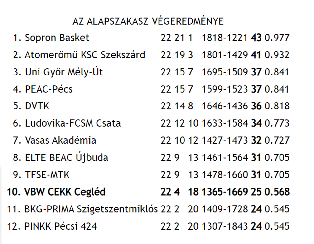VBW CEKK Cegléd-BKG-PRIMA Szigetszentmiklós 82-68 (24-19, 27-13, 17-15, 14-21)