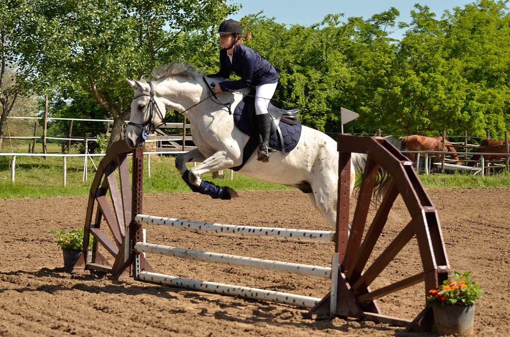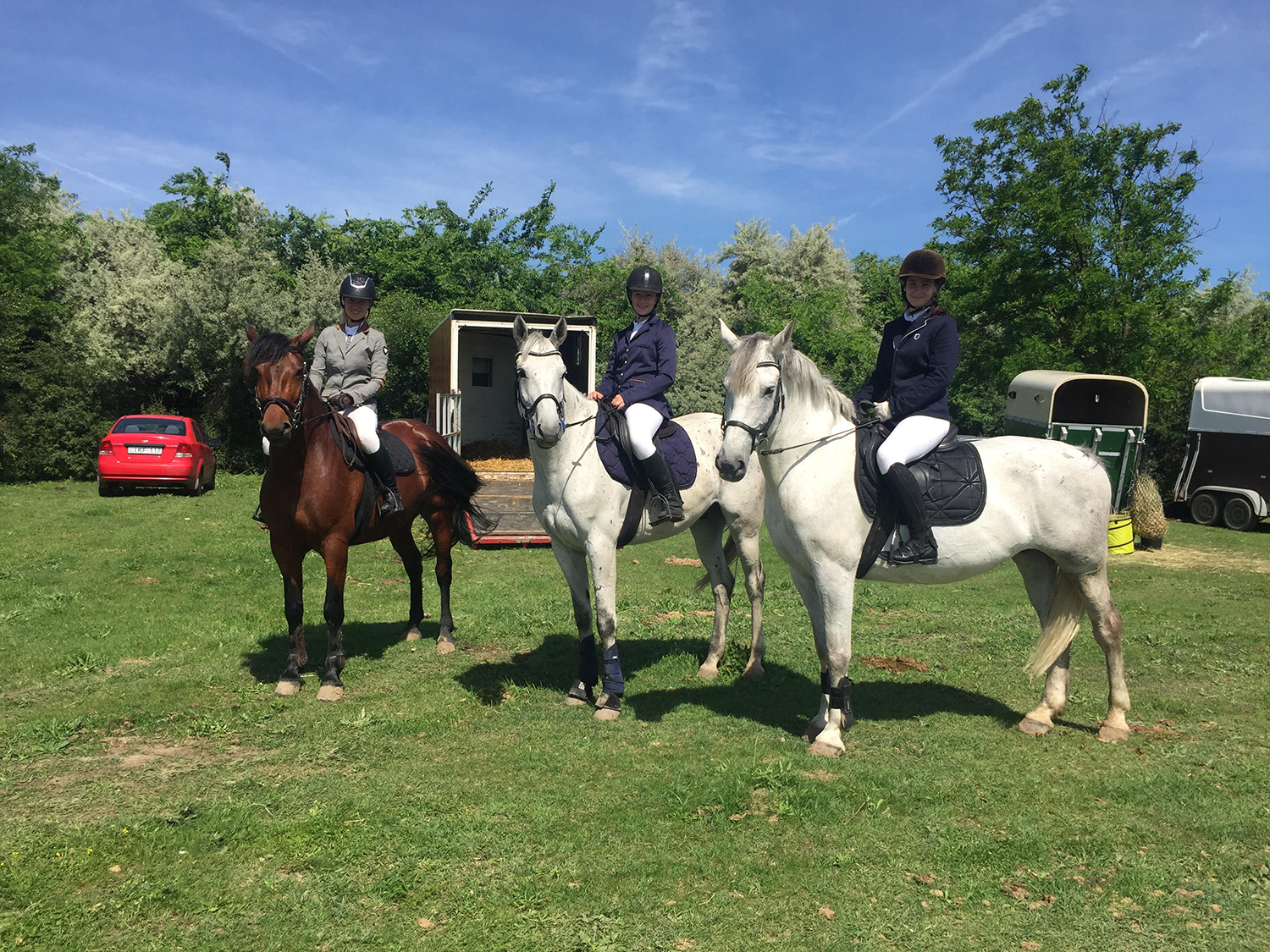 Senkei Kis Zóra, Tarkó Vanda Trixi, Elekes Réka már saját lovukkal, Kocsis Maja pedig iskolalovunkkal várta a nagy megmérettetést. A sikeres elméleti vizsga után a lányok ugyan fellélegeztek, de már készülniük is kellett az előlovaglásra, amit a rossz idő miatt a fedett lovardában tartottak meg. Mind a négy lány könnyedén vette az első két akadályt. Az ugró vizsgára viszont szabadtéren szakadó esőben került sor. A lányok lovai közül kettő rutinosnak, kettő viszont rutintalan lónak mondható. Szerencsére gyönyörű magabiztos pályákkal meggyőzték a bírókat, hogy nekik igenis helyük van a „nagyok” között, így mind a négy lányunk sikeres vizsgát tett.