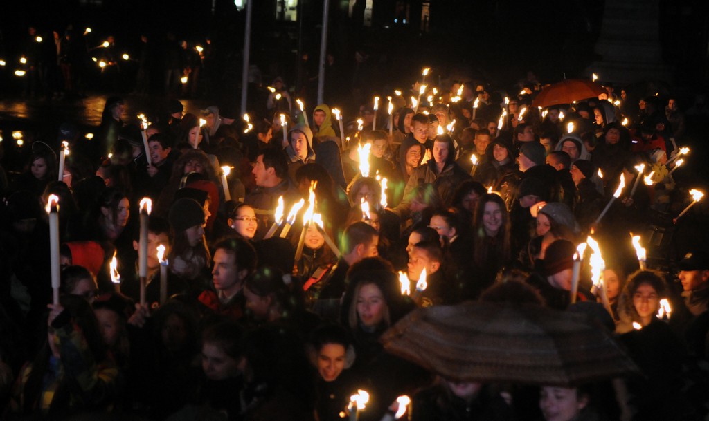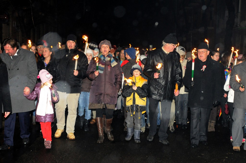 Este a diákok szokásos fáklyás felvonulására került sor, mely a Rákóczi útról indult. A menet a Református Templom elé érkezett, ahol Solymosi Sebestyén játszott az egybegyűlteknek.