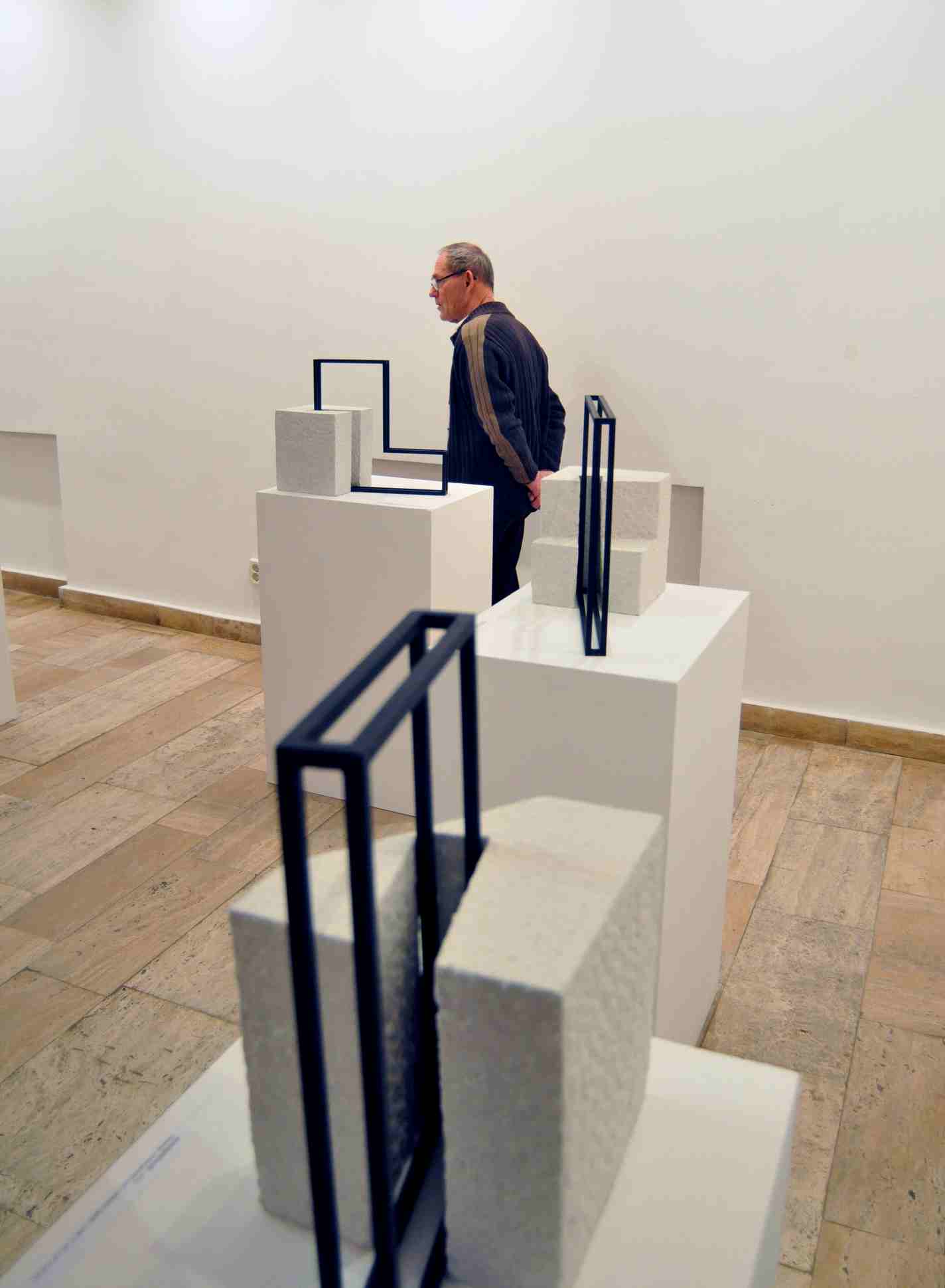 Az elmúlt években készült autonóm plasztikákból, architektonikus kompozíciókból álló tárgy-együtteseim darabjai formailag és tematikájukat tekintve is szervesen kapcsolódnak egymáshoz. Az absztrakt, geometrikus térbeliség már évek óta foglalkoztat. Plasztikáim egymásból fejlődő kompozíciói, a kint és bent, a zárt és nyitott fogalmak köré rendeződnek; a darabok nagy részének szellemiségében a múlt és a jövő közötti kapcsolat változásának egy rögzített pillanatában való megfogalmazása jelentkezik; sok esetben azonos emlékképként megjelenve, melyek akár történelmi, történeti témájú eredetre is vonatkoztathatóak. Azonban egy esetben sem beszélhetünk konkrét előképről, vagy kiindulópontról. Plasztikáim gondolati hátterét tekintve, elsősorban olyan emberi alkotások, konstrukciók, architektonikus képződmények inspiráltak, melyekkel eddigi (valóságos és képzeletbeli) utazásaim és mindennapjaim során találkoztam és találkozom: város- és utcarendezési megoldások, különböző korok épületei, konstrukciói. – mondta a művész egy korábbi kiállítása kapcsán.