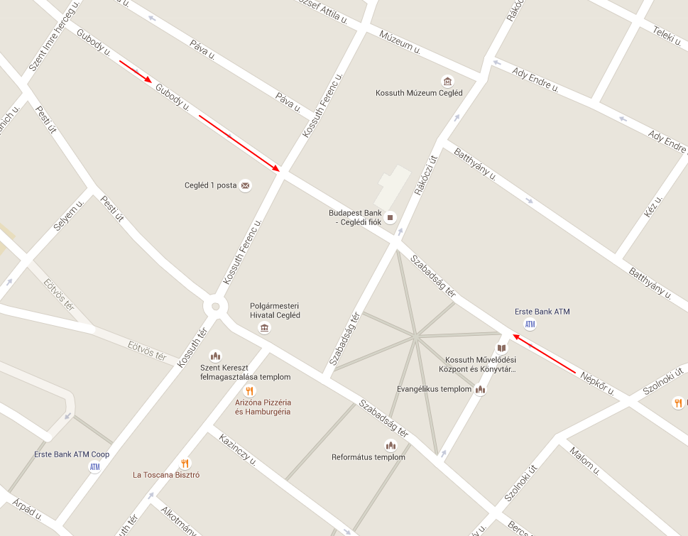 Változatlanul a Kossuth tér keleti és nyugati oldalán, a Kossuth Ferenc utca, Pesti út és Teleki utca közötti szakaszán, az Árpád utca, Selyem utca és Kút utca közötti szakaszán, beleértve az élelmiszer-és virágpiac bejáratánál kialakított parkolót is.