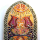 Ha ősiségről van szó, akkor külön kell szólni a kiállítás Boldogasszonyhoz kapcsolódó, gondosan kidolgozott, apró ecsetvonásokkal precízen megfestett képeiről is, melyek Árpád-kori és még azelőtti magyar motívumokat felhasználva mutatják be az Istenszülőt. A harmonikus kompozíciók több alakban és szerepben ábrázolják Jézus anyját, aki egyben a kereszténység előtti ősi magyar hit női attribútumainak hordozója és egységesítője…..