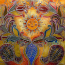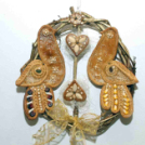 Ehhez az ősi kincshez méltóak Kolozsvári-Donkó Rebeka itt megtekintető kortárs művei is, melyek ugyan a közelmúltban születtek, ám formájukat, stílusukat tekintve időtlenek. Az itt látható népmese- és balladaillusztrációk motívumkészlete a magyar népművészet hagyományaira támaszkodik. Színviláguk is ősi, hiszen a visszafogott pasztell és a földszínek használata azokat az időket idézi, amikor még a természetből nyerte az ember színezőanyagait. A „magos” mézesbáb anyaga és díszítése pedig maga az élet; a gabona…..