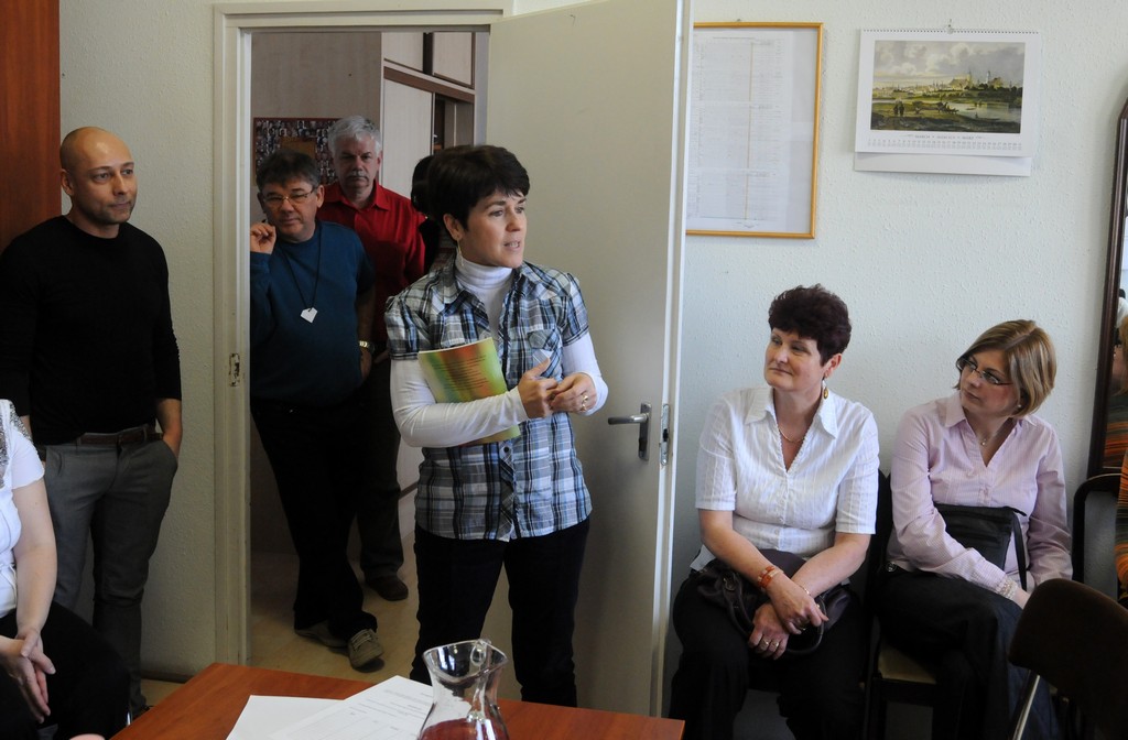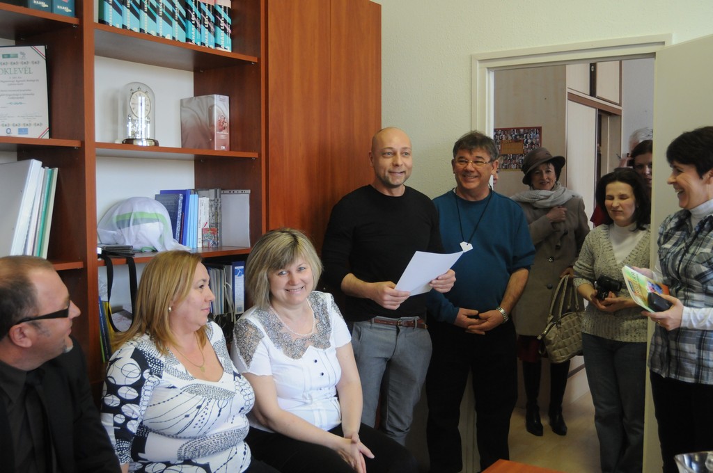 Míg a délelőtt a fiataloknak, a délután főleg a közgazdasági munkaközösség tagjainak és közös beszélgetésre meghívott kereskedelmis kollégáinknak okozott meglepetéseket, új élményeket. Rebek Éva a KIK Ceglédi Tankerületi igazgatója, Halász József tankerületi szakképzési igazgató helyettes és iskolánk volt igazgatója Tóth Géza - jelenleg közoktatási szakértő - , segített igazgatónőnknek és a közgazdász tanároknak eligazodni az oktatási rendszer számtalan változásának útvesztőjében.