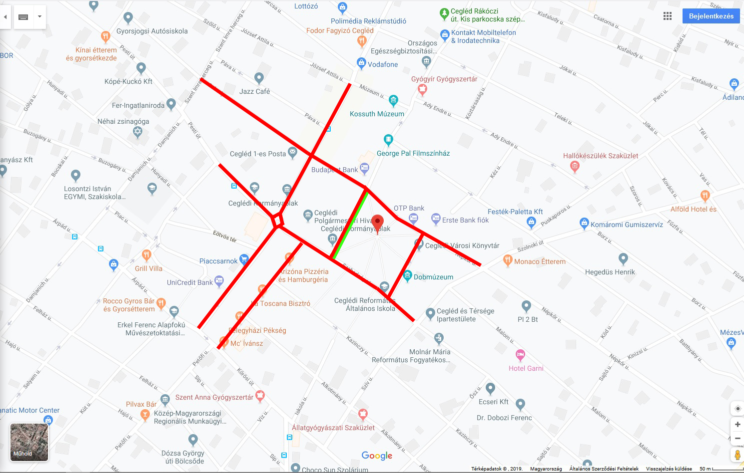 - Kossuth tér városház előtti szakasza (50 hrsz.)