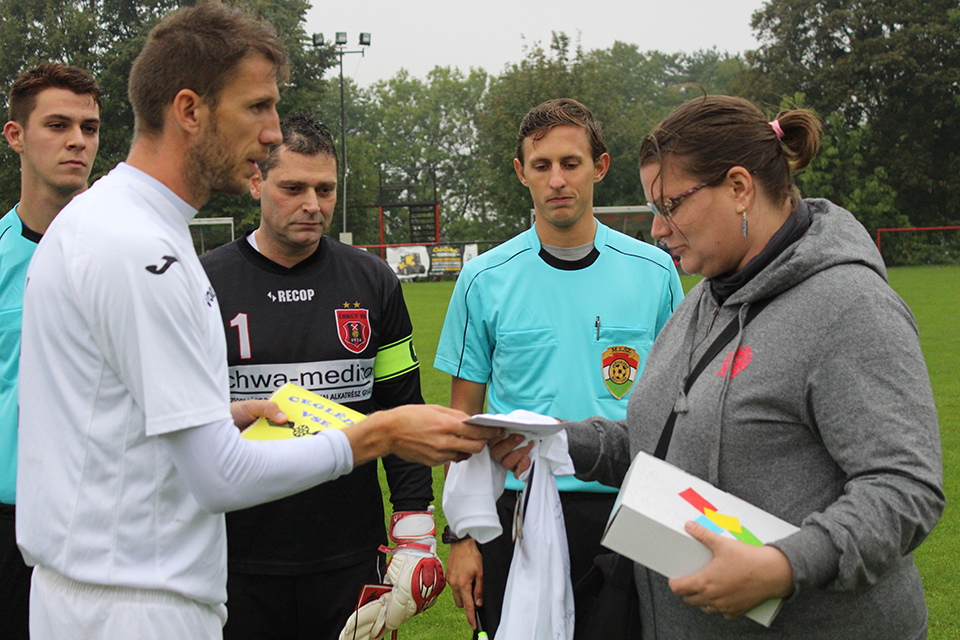 Ezen kívül Szabó Viktor átadott egy borítékot, amely a játékosok és a szakmai stáb által összeadott szerény adományt tartalmazta.