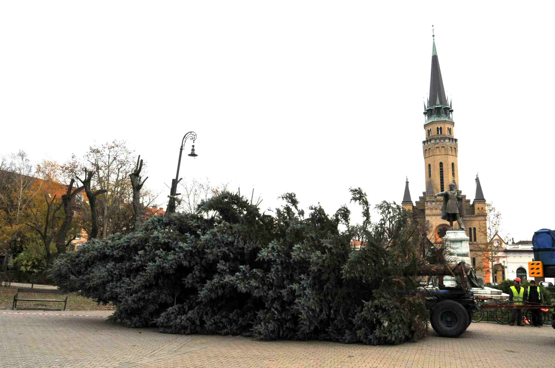 A fát idén is a VÁRVAG Nonprofit Kft. főkertésze, Kovács József irányításával vágták ki, majd rendőri felvezetéssel szállították megszokott helyére, ahol hamarosan vadonatúj díszekkel ékesítik majd fel.