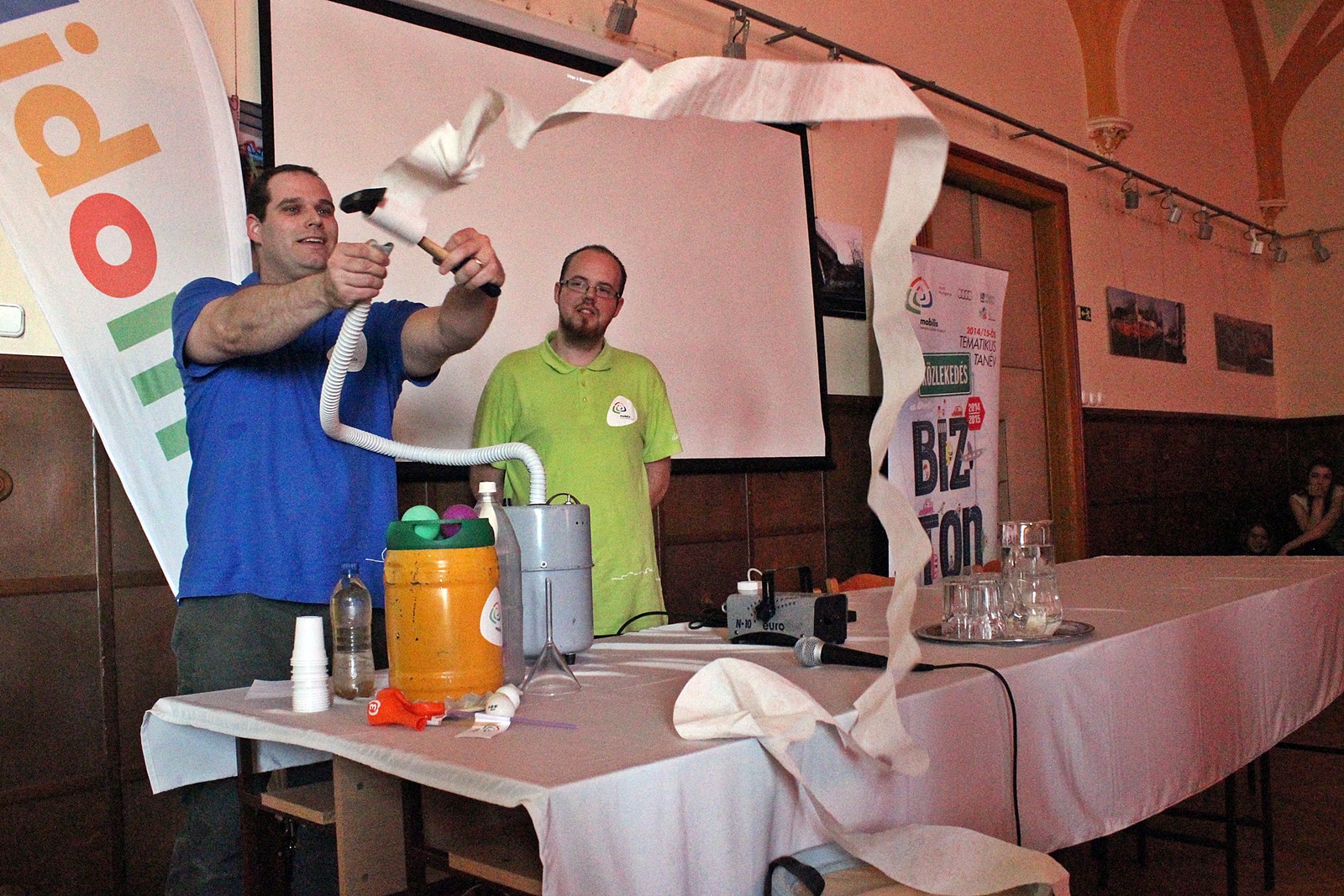 Zárásképpen a győri Mobilis munkatársai mutattak be érdekes kísérleteket az áramlástan témaköréből.