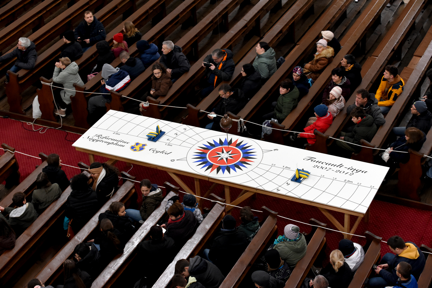 Szombaton is sokan nézték végig azt a látványos fizikai kísérletet, ami bebizonyítja, hogy forog a Föld. Ezúttal is a Református Nagytemplomban mutatta be Kis Lajos és Kozma Attila a híressé vált Foucault inga lengését.
