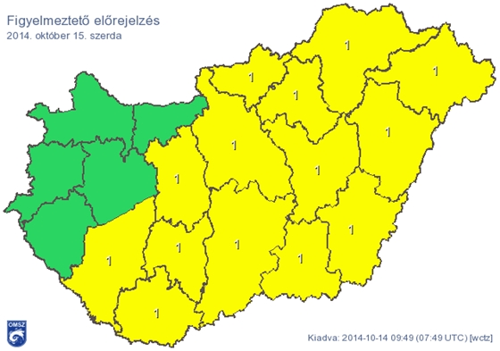 Szerdán látványosan visszatér az ősz: az Országos Meteorológiai Szolgálat heves zivatarok miatt adott ki figyelmeztetést 14 megyére. Csak 5 északnyugati megye marad ki a szórásból.