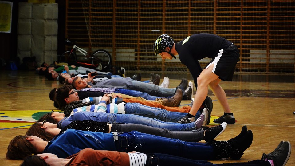 A világ egyik legjobb triálosa 32 embert ugrott át kerékpárjának hátsó kerekén pattogva, majd oldalról átrepült a 130 centis magasság felett