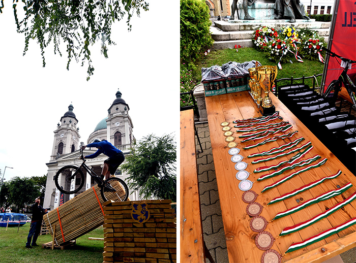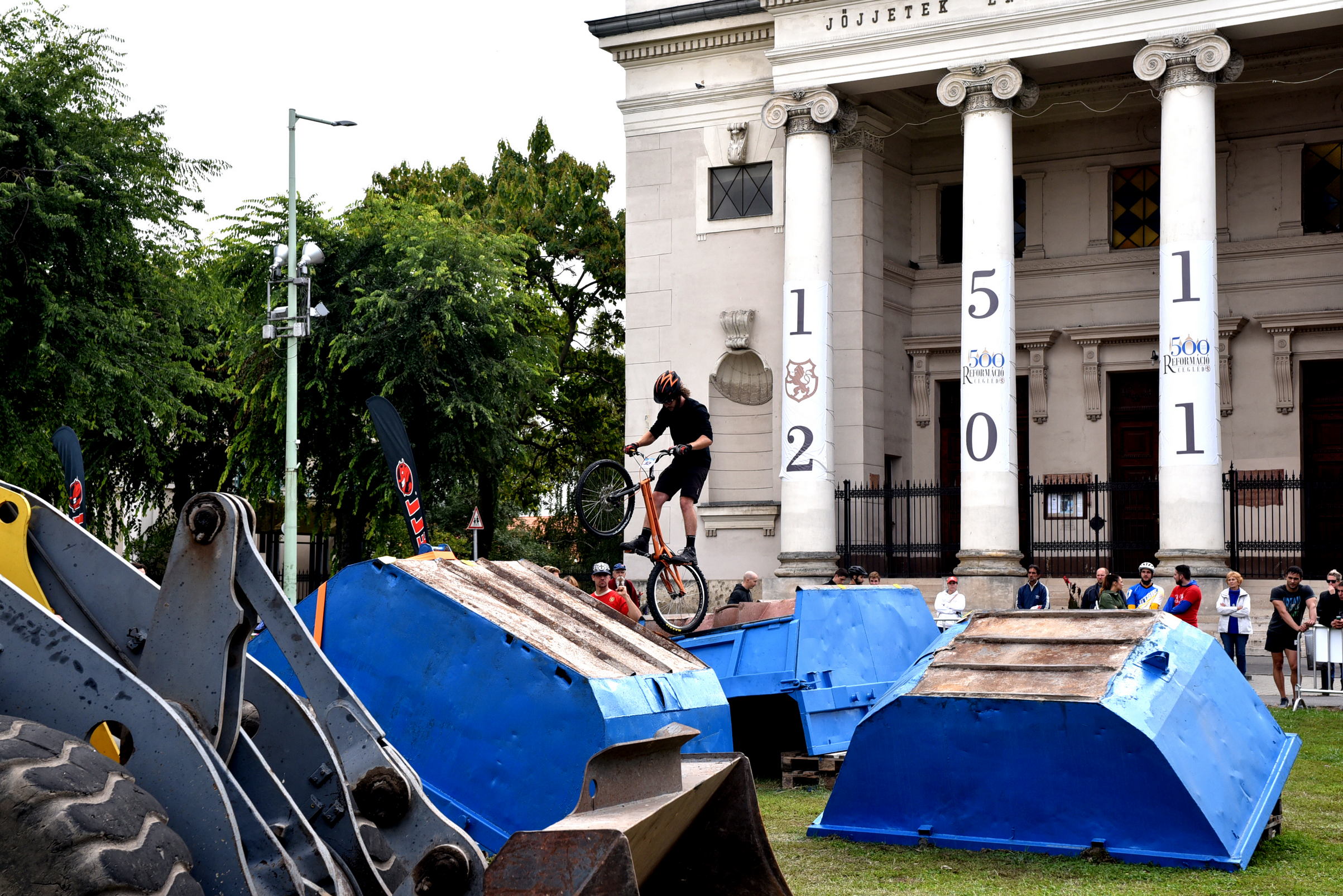 Az első ceglédi triál versenyen raklapokból, betonhengerekből, lécekből és konténerekből összerakott pályán kellett végigmenniük a bringásoknak. Bár a köztudatban inkább fiú sportként él a triál, egyre több lány is kipróbálja benne magát.