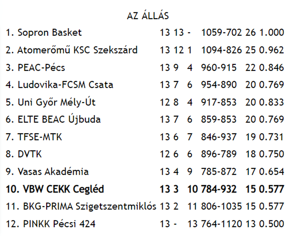 CEGLÉD: Katona Sz. 8/3, HOLESÍNSKÁ 18/6, Szirony 2, Szabó P., Baugh 4. Csere: Szabó D. 7/3, Rakita 7, Szabó Flóra 8, Szerelem-Kobolák 3/3, Szabó Fanni 9/3, Viszmeg, Laufer 3. Edző: Sandro Orlando