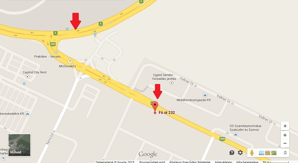 2.,A 400. számú úton, Vecsés lakott területén belül a Fő út 232. szám előtti szakasztól Monor irányába 1 kilométeres szakaszon.