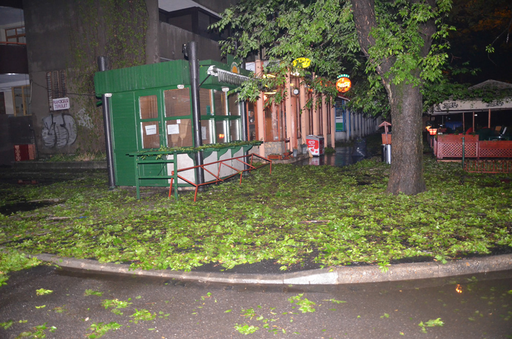 Az időjárás a várost sem kímélte, az utakon mindefelé letört ágakat és rengeteg falevelet lehet látni. A veteményeskertekben, gyümölcsfákon is bizonyára nyomot hagyott a jégeső, ezért a vasárnap bizonyára sok helyen a károk felmérésével fog indulni.
