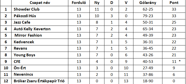 Születtek papírforma eredmények, volt bomba meglepetés és láthattak több színvonalas mérkőzést is a tizenharmadik fordulóban kilátogató nézők. Újra helycsere volt a tabella élén és tovább lépett előre –már a dobogón van- a Jazz Cafe csapata.