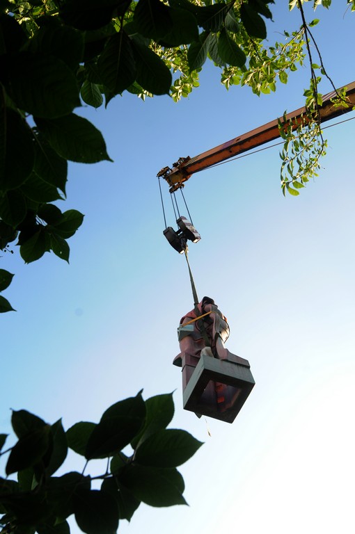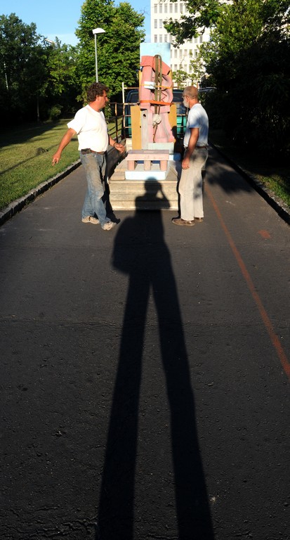 A több mint két méter magas, anyagában színezett, festett beton szobrot egy darus kocsi segítségével tudták csak a helyszínre szállítani és felállítani. A bejárathoz közel elhelyezett szobrot mostantól mindenki megcsodálhatja.
