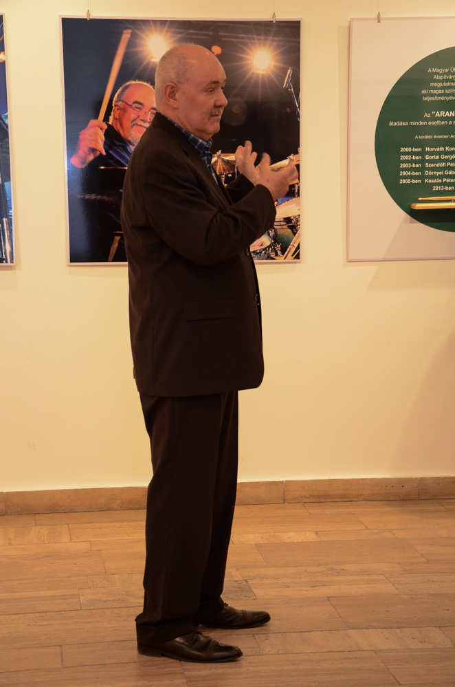 A kulisszatitkokat Kármán Sándor osztotta meg a szépszámú érdeklődővel rendhagyó, zenés tárlatvezetése során a „Húszéves a dobosgála” című kiállításon, melyen a rendezvény történetének legjobban dokumentálható pillanatait gyűjtötte csokorba.