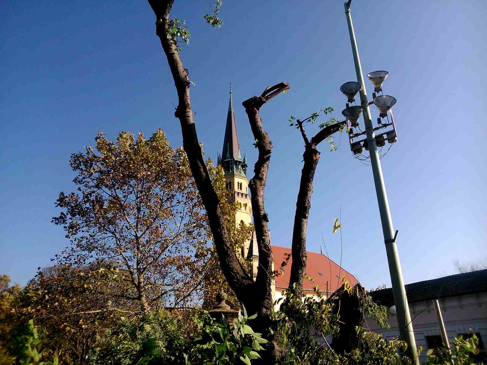 Egyszer csak bátortalan rendezési munkálatok indultak, ami elakadt és nem hozta meg a kívánt eredményt. Újabb évek, újabb taapasztalatok: ez így nem maradhat. Közben a babonás pártos néphit is erősödött, hogy ha hozzányúlnak a fákhoz, veszíteni lehet a választásokon. Nos, a fák nem politikai indikátorok, de finnyásak, mert szeretik az ápoltságot és főleg a fényt. Mert ha – akár önmaguk árnyékától is bajba kerülnek, száradni fognak az ágaik. Azt teszik most is. Mint a rossz minőségű munkára szokás mondani: a kevesebb, az több! Fából is, a fák árnyadó hatásából is…