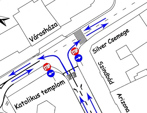 Az útburkolati jelek és táblák fogják jelezni az autósoknak, hogy hogyan kell közlekedni a megváltozott forgalmi rend szerint. A Kossuth teret ezután nem kell feleslegesen kerülgetni, a Pesti útról balra is lehet fordulni és egyenesen is lehet majd menni. A városháza előtti szakasz kétirányú lesz.