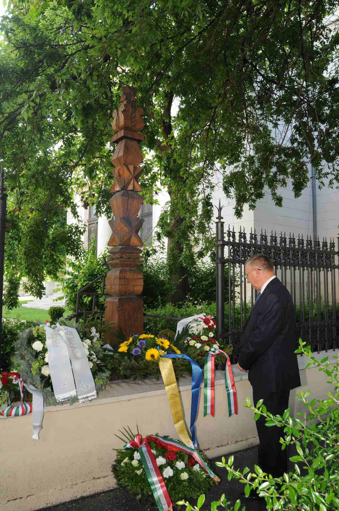 A Székely Himnusz és a Szózat meghallgatását követően csendes megemlékezés tartottak a Református Templom kertjében álló Trianoni Kopjafánál, ahol elhelyezték a megemlékezés virágait.