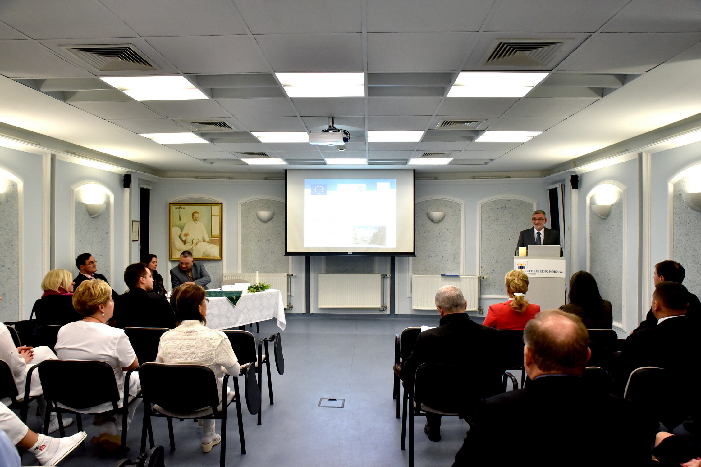 Az egybegyűlteket Bobál István gazdasági igazgató üdvözölte, röviden ismertetve a pályázat gazdasági hátterét és előnyeit. Földi László országgyűlési képviselő örömét fejezte ki köszöntőjében, hogy a „mi kórházunk” új, korszerű eszközökkel gyarapodva tudja magas színvonalú gyógyító munkáját folytatni.