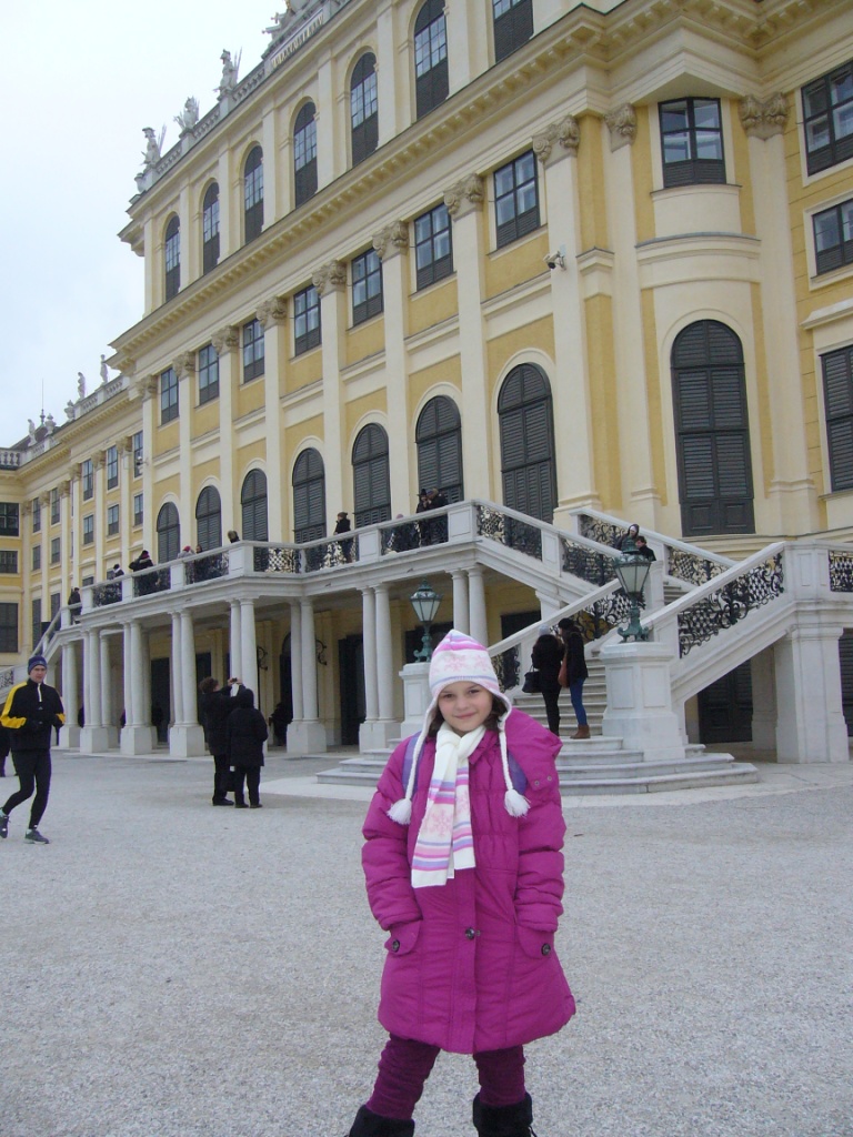 Másnap kora reggel indultak tovább Ausztriába. Már az utazás is élmény volt a kislánynak, mert ez volt az első alkalom, hogy vonatra szállt. Negyed 10-kor érkeztek a császárvárosba. Először Schönbrunnba mentek, ahol megtekintették a császári lakosztályt, sétáltak a kastélyt körülvevő parkban, és elvegyültek a forgatagban.