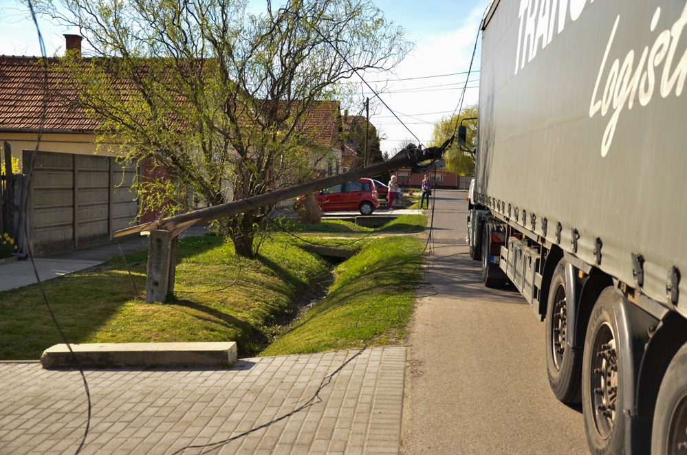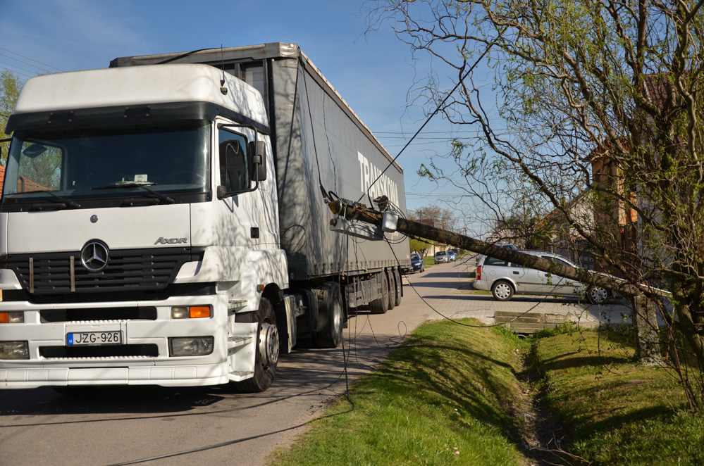 Pénteken délután egy teherszállító kamion hajtott be a Török Ignác utca felöl a Hattyú utcába. A kamion sofőrje valószínűleg nem jól mérte fel járműve magasságát, út közben leszaggatta az utca villanyvezetékeit és több villanyoszlopot is kidöntött mielőtt megállt.