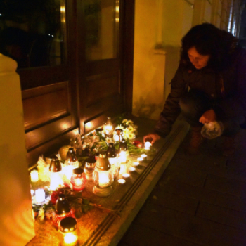Csendes gyertyagyújtás a Dobmúzeum előtt
