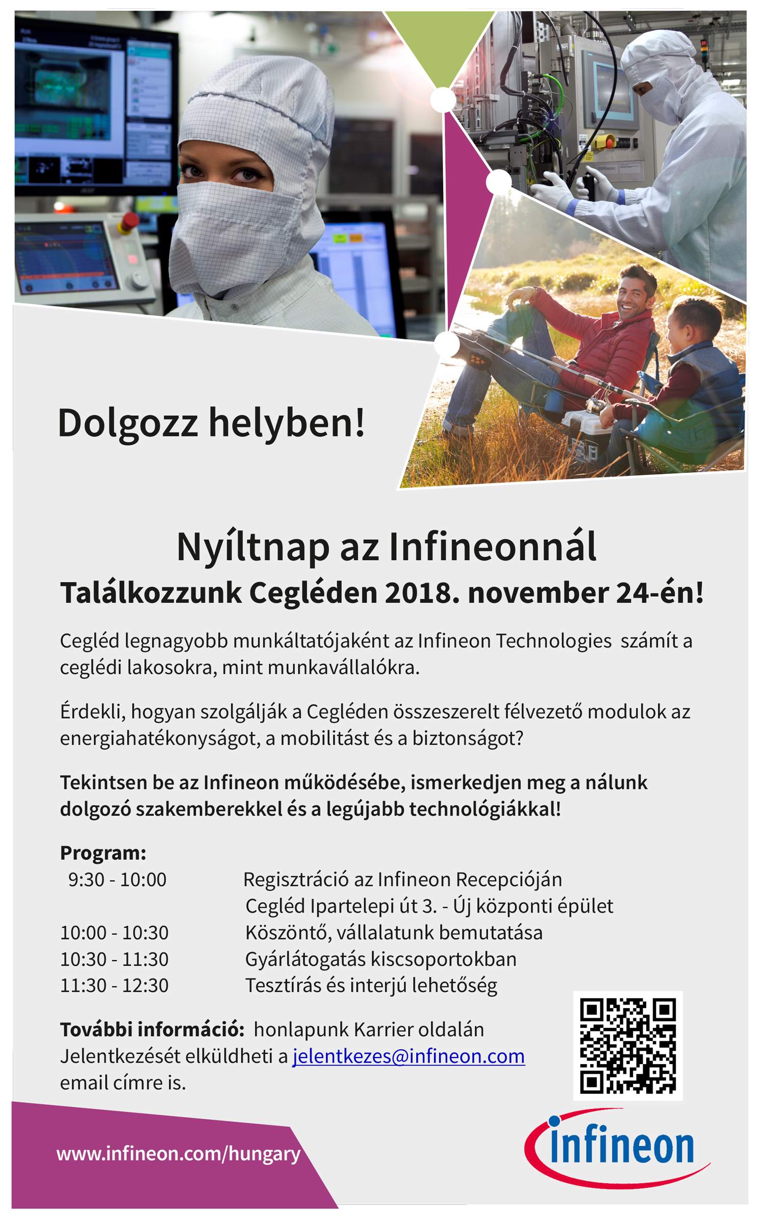 További információ: honlapunk Karrier oldalán: www.infineon.com/hungary